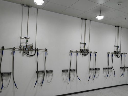 2.氣瓶間下設立有一次調壓控制表面板,其中的二托一控制表面板帶吹掃銅電鍍控制表面板4套。